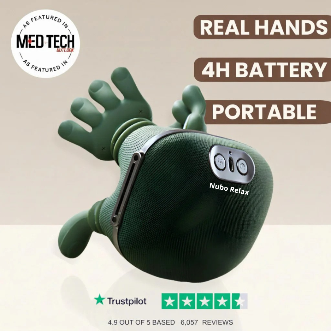 A realistic hand massager that mimics the touch of human hands to relieve muscle tension and provide instant comfort